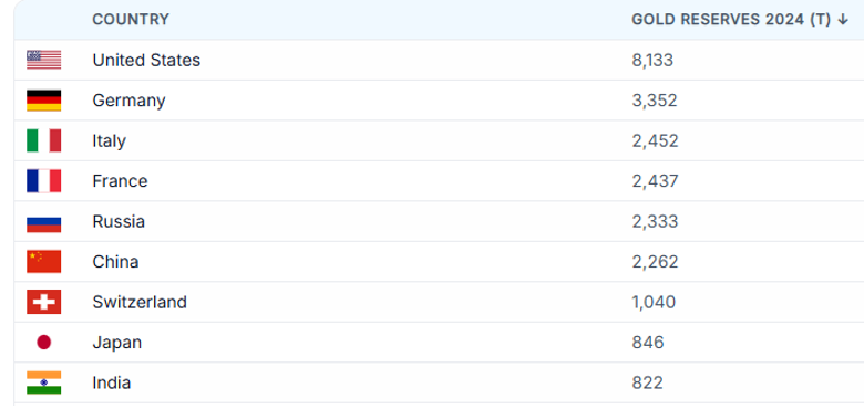 These numbers are so absurdly large… and it puts the $1 trillion worth of gold into context. The US Treasury owns the largest amount of gold of any country on earth, and it’s not particularly close: