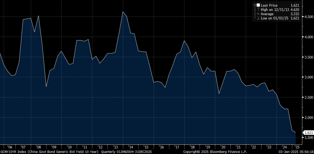China’s 10-year rate has dropped to 1.6%, the lowest ever.