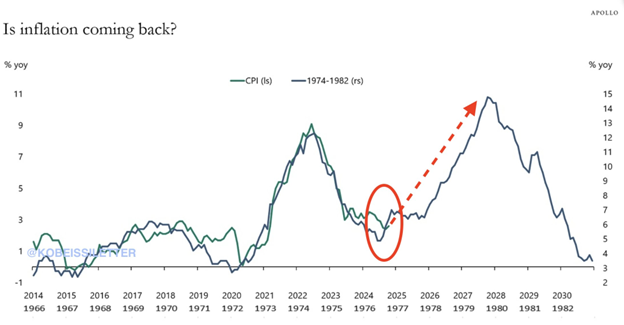 If you assume our current bull run started around 2020, it looks like we’re about halfway through, and it looks like we’re bouncing around on the same inflation trajectory too.