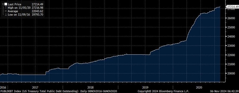 A Trump victory will ultimately be bullish for Gold. Trump loves debt. He built his real estate empire using debt and will do the same to jump start the US economy. Last time Trump was President US public debt rose $7 trillion or 35% during his term. If he spends like last term we could expect to see US debt rise from current $37 trillion to $49 trillion in 4 years.